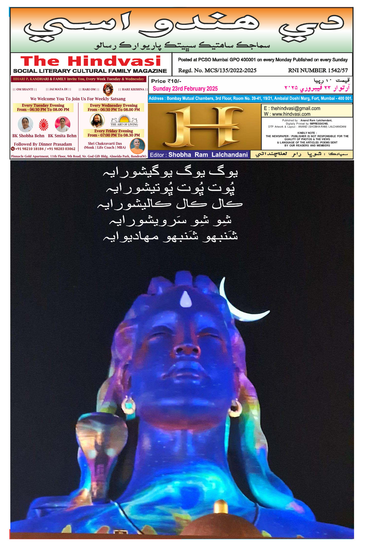 Disclaimer: The Hindvasi Newspaper Print copy is published weekly from Mumbai. E-paper access is provided to you FREE as is basis. E-paper conversion process may generate some typos or errors in web publishing.